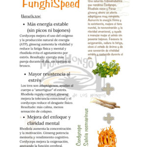 Suplemento alimentario elaborado a base de extractos premium de hongos Cordyceps, Rhodiola rosea y Panax ginseng.